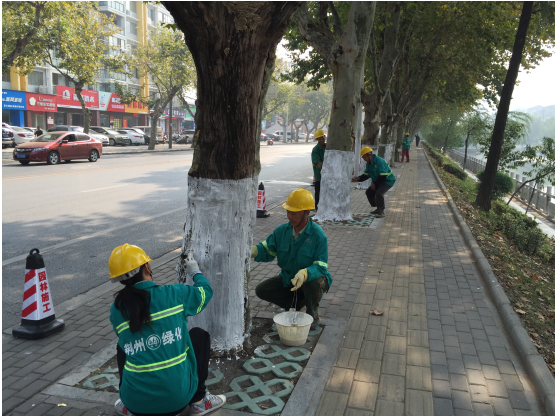 為加強(qiáng)法桐病蟲(chóng)害冬季防治,美化城市道路景觀,市綠化管理處從今年10月20日開(kāi)始對(duì)中心城區(qū)7000余株法桐進(jìn)行涂白,為樹(shù)木穿上白色“新衣”。