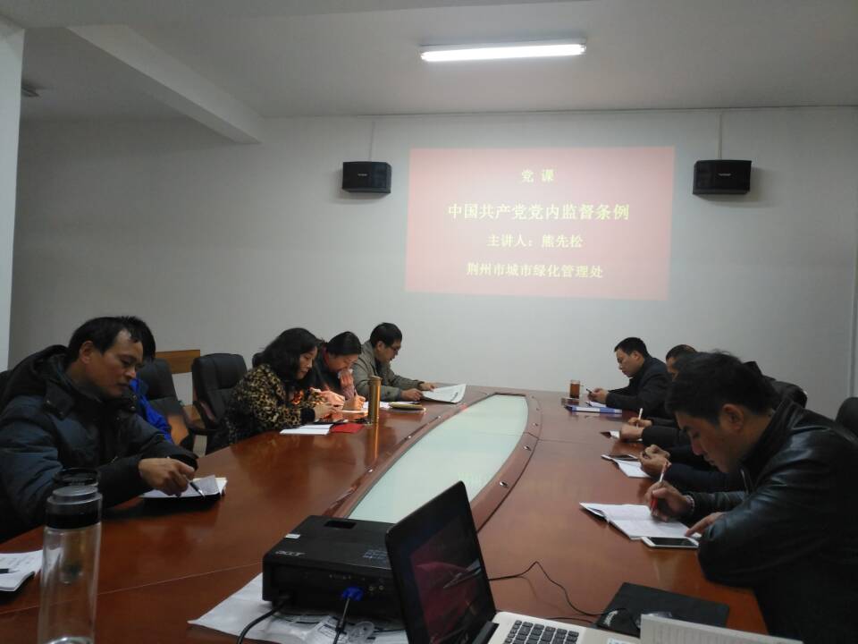 上黨課,跟黨走 2016年12月10日早上8:30,從綠化處會議室傳來了“我志愿加入中國共產(chǎn)黨,擁護黨的綱領(lǐng)……”的入黨宣誓聲。這不是某位黨員入黨前的宣誓,而是綠化處的黨員們在重溫入黨誓詞。每月的10日,是綠化處的黨員活動日。在12月的黨員活動日,綠化處的黨員們胸佩黨徽,心懷對黨的熱愛,一起認真學習了《中國共產(chǎn)黨黨內(nèi)監(jiān)督條例》。上黨課,學習黨的理論;上黨課,時刻警醒自己;上黨課,將黨放在心中;上黨課,一輩子跟著黨走。