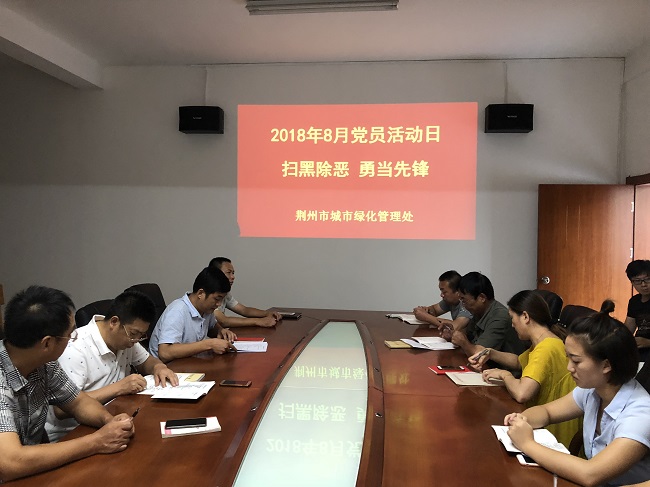 荊州市城市綠化管理處 “掃黑除惡、勇當(dāng)先鋒”主題黨日活動開展情況 為進一步貫徹落實習(xí)近平總書記關(guān)于開展掃黑除惡專項斗爭重要指示精神,教育引導(dǎo)單位廣大黨員同志提高政治站位,帶頭抵制黑惡勢力,帶頭參與掃黑除惡專項斗爭,為鏟除黑惡勢力滋生土壤提供堅強組織保證,2018年8月10日,荊州市城市綠化管理處以“掃黑除惡、勇當(dāng)先鋒”為主題,開展了一次主題黨日活動。