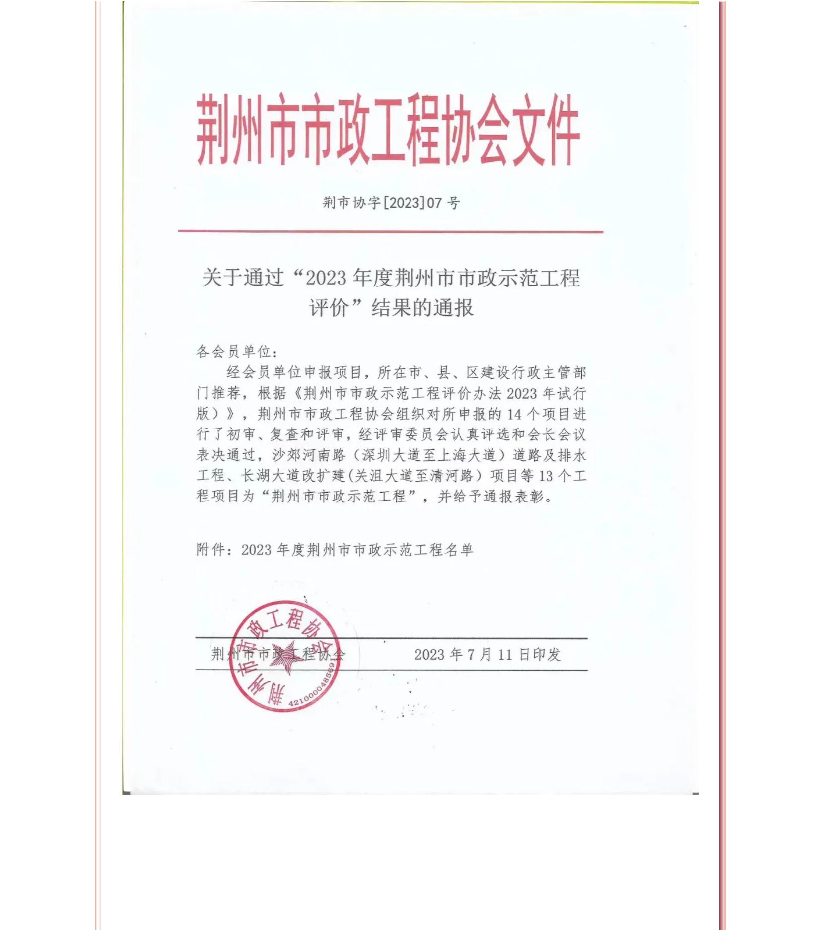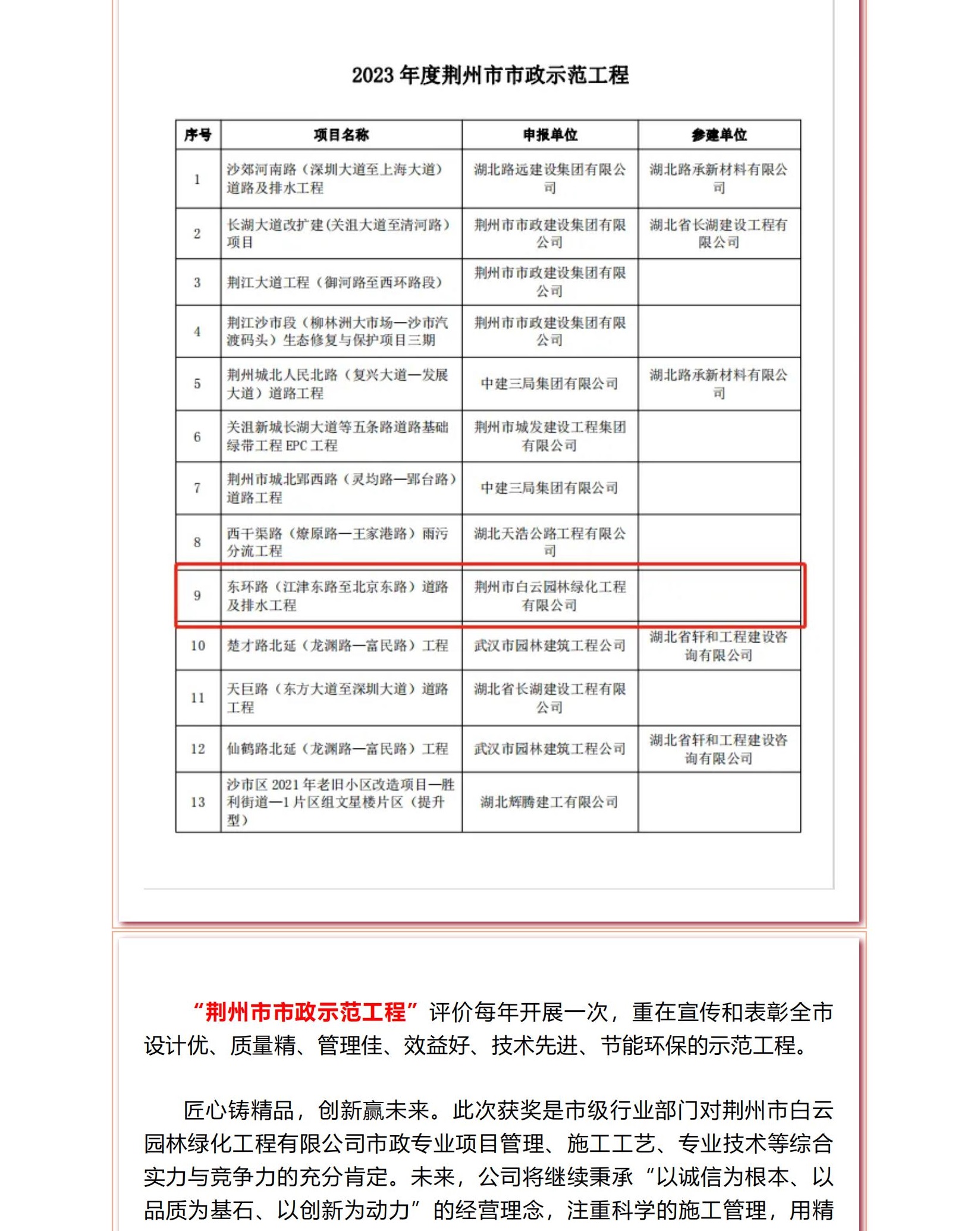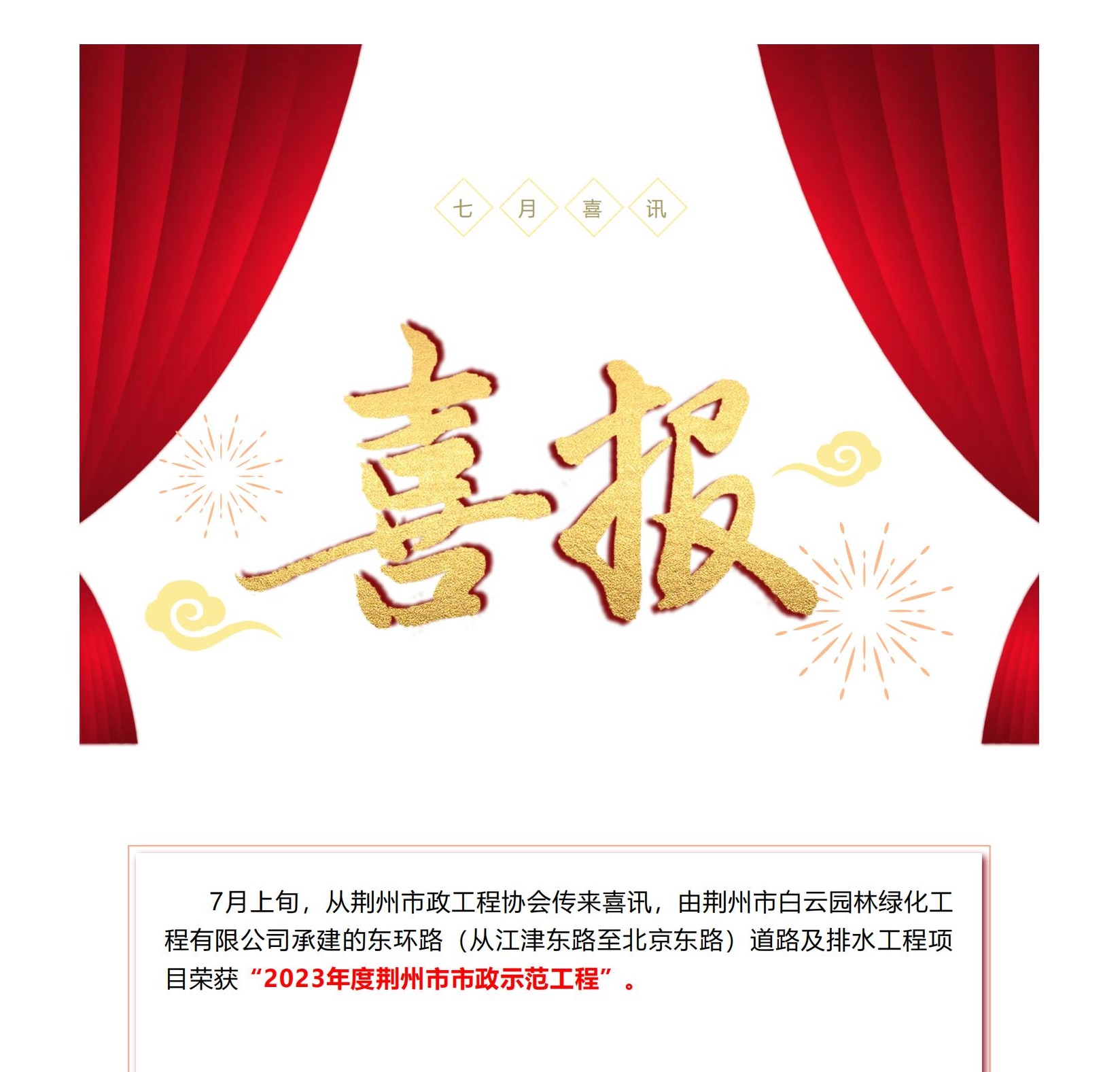 喜報|白云園林榮獲“2023年度荊州市市政示范工程”